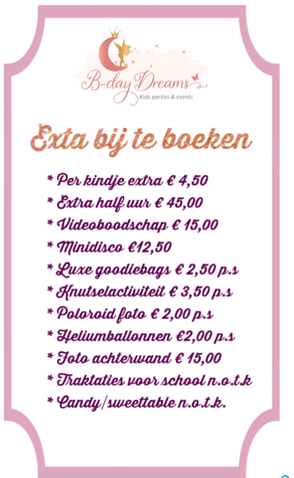 U kunt kiezen uit een van onze standaard pakketten of een feestje op maat.
